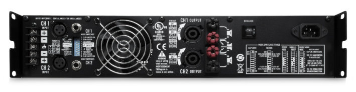 專業(yè)功率放大器; 立體聲模式(雙聲道驅(qū)動(dòng)) 8?/FTC 20 Hz-20 kHz/0.1%THD:每聲道平均持續(xù)輸出功率185W 8?/EIA 1 kHz/0.1%THD:每聲道平均持續(xù)輸出功率200W 4?/FTC 20 Hz-20 kHz/0.1%THD:每聲道平均持續(xù)輸出功率280W 4?/EIA 1 kHz/0.1%THD:每聲道平均持續(xù)輸出功率300W 2?/EIA 1 kHz/1%THD:每聲道平均持續(xù)輸出功率430W 橋接單聲道模式 8?/FTC 20 Hz-20 kHz/0.1%THD:平均持續(xù)輸出功率530W 8?/EIA 1 kHz/0.1%THD:平均持續(xù)輸出功率600W 4?/EIA 1 kHz/1%THD:平均持續(xù)輸出功率830W 信噪比(20 Hz-20 kHz)8?:>-100 dB 失真(SMPTE-IM):<0.01%8? 輸入靈敏度:1.15V(+3.4 dBu) 電壓增益:31.6x(30 dB) 輸出電路類型:AB類 電源要求:典型,1/8 粉紅噪音,4?*:4.5A; 極端條件,1/3粉紅噪音,4?*:6.6A。 電源插頭類型100/120V:NEMA5-15電源插頭類型,230V:CEE7/7 重量,凈重:15.9 kg;運(yùn)輸重量:18.6kg。 失真:20 Hz-20 kHz:低于額定功率10dB:<0.03%THD/4?and 8?;1.0 kHz and below:全值額定功率:<0.03%THD/4?and 8?。 頻率響應(yīng):+0/-1:dB20 Hz-20 kHz -3dB點(diǎn):5 Hz和50 kHz(低頻濾波旁通/8?)阻尼系數(shù)(1 kHz及以下):8?時(shí):>300 輸入阻抗:非平衡10kΩ,平衡20kΩ 輸入削波:10Vrms(+22dBu)冷卻:持續(xù)可變速風(fēng)扇,氣流由后至前接線端子(每聲道):輸入端:有效平衡/屏蔽接線端子,XLR及6.3mm,TRS的頂端和XLR插腳2均為正極;輸出端:防碰撞接線柱和Neutrik Speakon鎖定式插隊(duì)孔。 控制:前面板:交流電源開關(guān),聲道1和聲道2增益控制/后面板:10位DIP開關(guān)。 指示燈:電源:綠色發(fā)光二極管/信號(hào):黃色發(fā)光二極管(每聲道1個(gè))/削波:紅色發(fā)光二極管(每聲道1個(gè))。 功放保護(hù):具有短路、開路、過熱、超音頻和射頻保護(hù)裝置,能平衡地和電抗性負(fù)載或不匹配負(fù)載相接。 負(fù)載保護(hù):每個(gè)聲道啞音開/關(guān),交流耦合(850a,1450a)/三元組開關(guān)(2450a、4050a、5050a)。 尺寸(寬x深x高):3.5"(8.9cm)高/2U機(jī)架高度 電源要求:100,120,230 VAC,50-60 Hz(工廠按要求配制) |